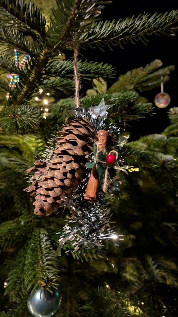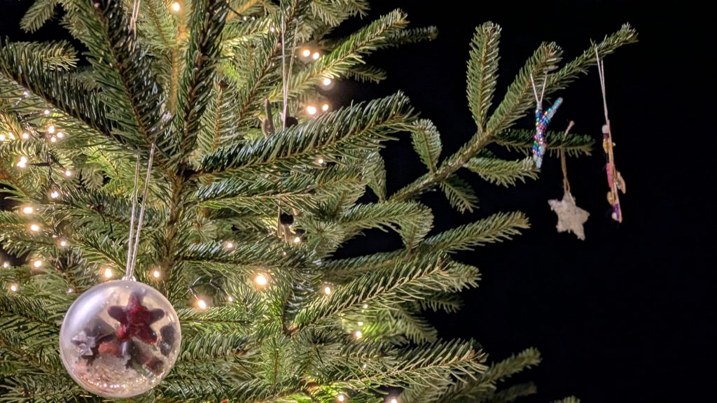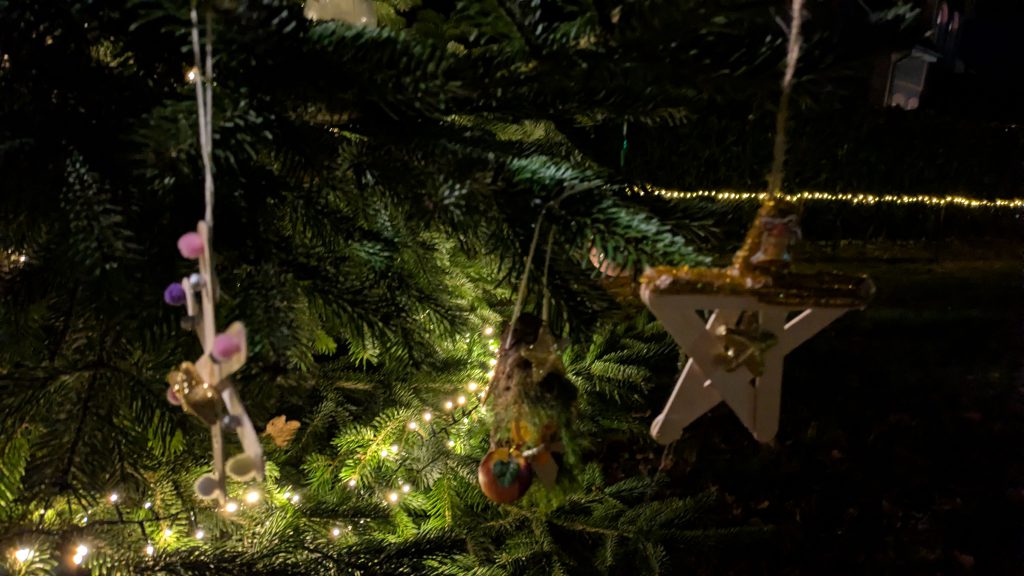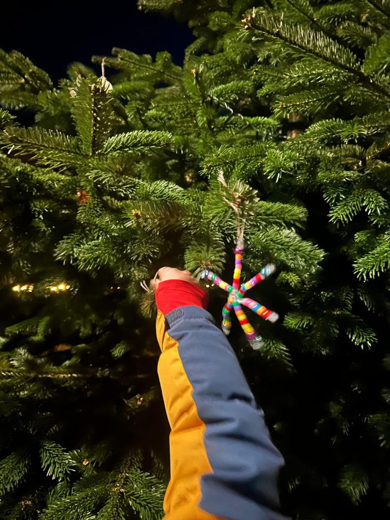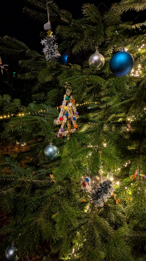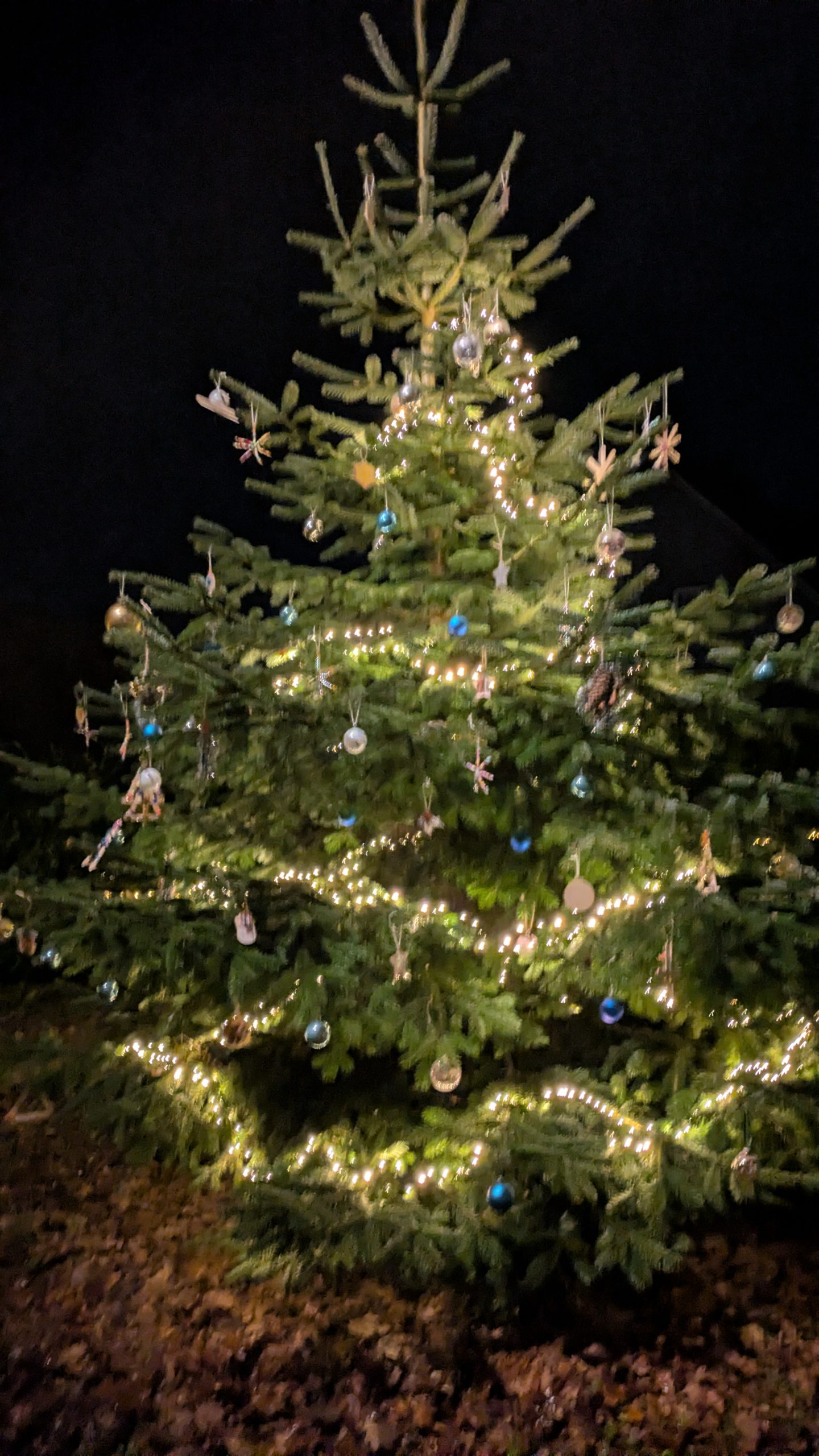 Als der letzte Anhänger seinen Platz gefunden hatte, folgte der feierliche Moment: Der Baum wurde beleuchtet und anschließend mit dem Lied „Oh Tannenbaum“ besungen – ein Augenblick, der vielen sicher noch lange in Erinnerung bleiben wird.