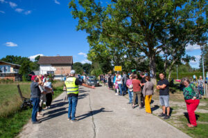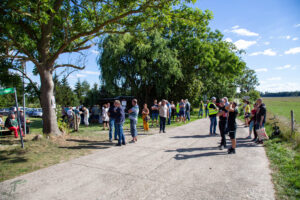 Festplatzes vor Ort, um die Oldtimer im Spalier zu begrüßen und zu bestaunen.